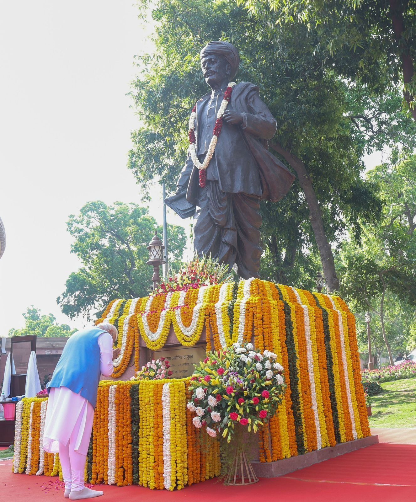 PM Narendra Modi paid tribute to Mahatma Phule in the premises of the Parliament.