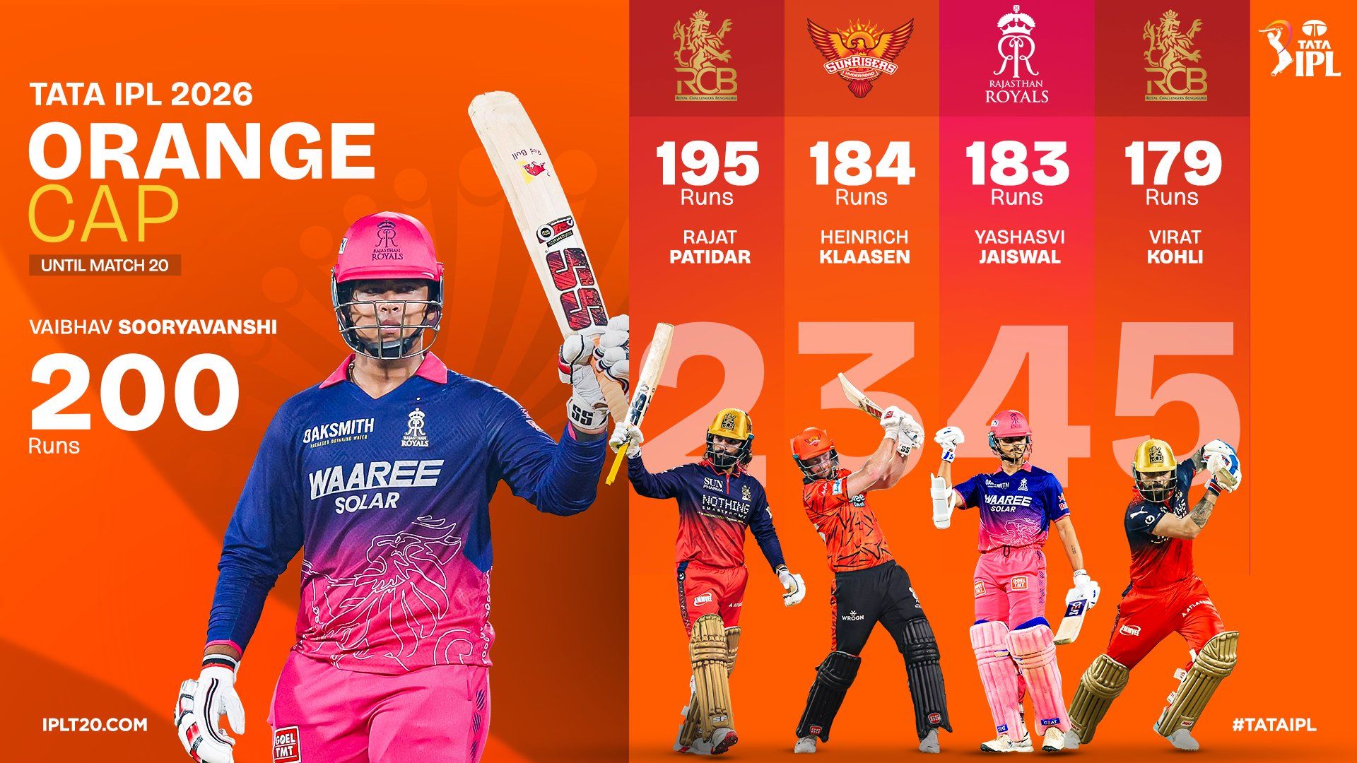 1⃣5⃣-year old Vaibhav Sooryavanshi tops the Orange Cap leaderboard after Match 20 🧢👏